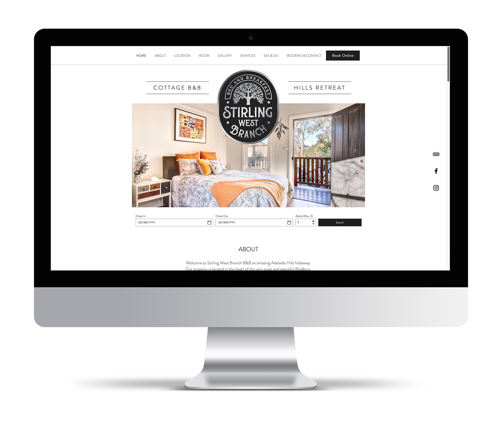 Stirling West Branch Bed & Breakfast logo and website design that features online booking and transactions.