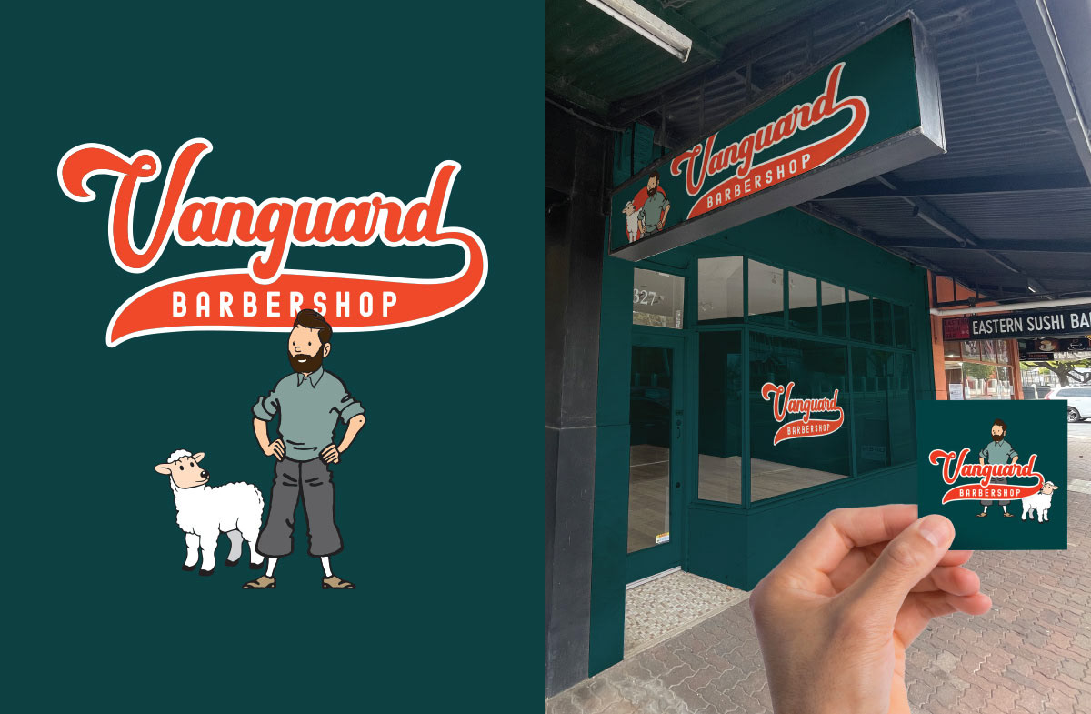 Classic cartoon inspired logo design for Vanguard Barbershop on The Parade, Beulah Park.