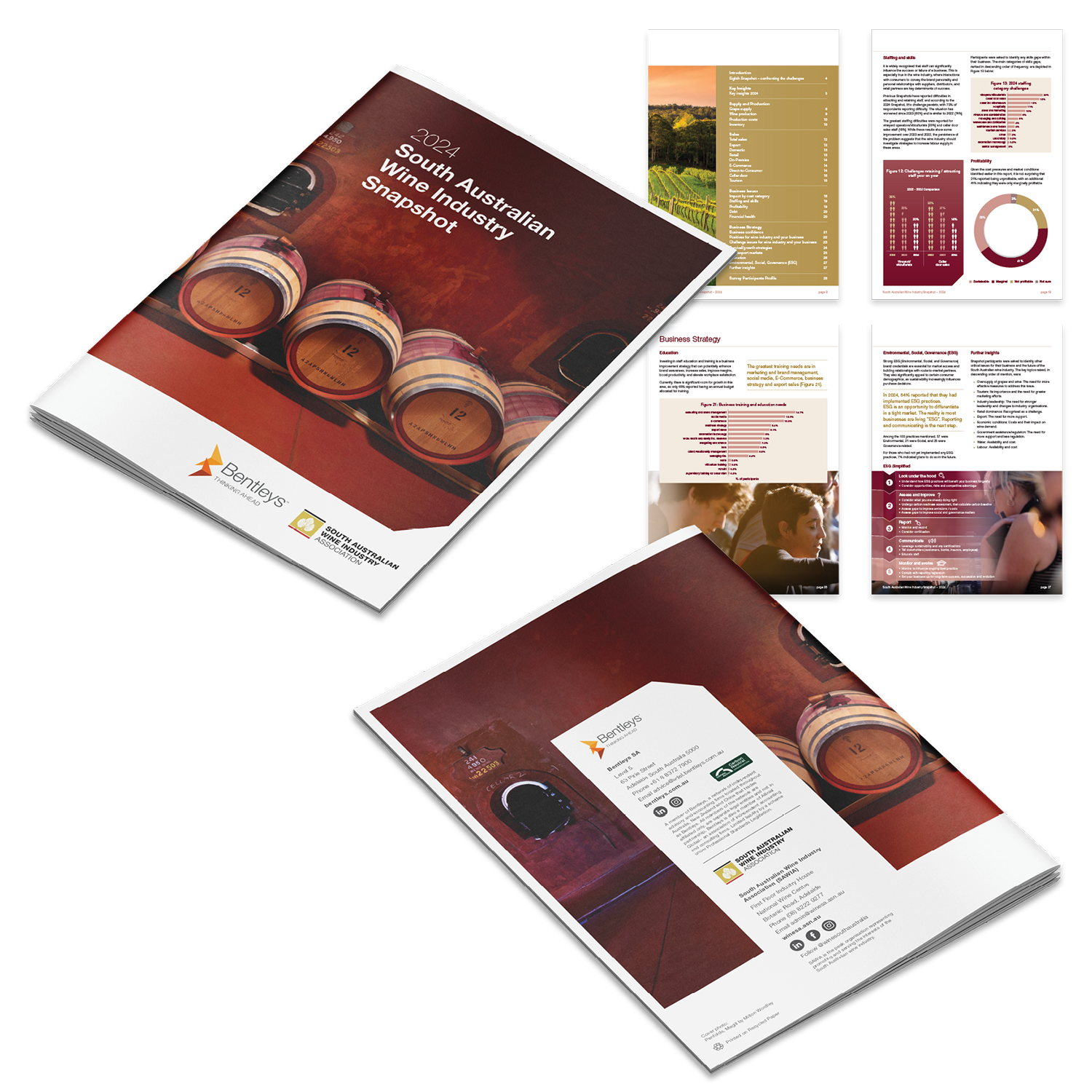 Crafting the Perfect Blend: The South Australian Wine Industry Snapshot Report Design for Bentleys SA and the South Australian Wine Industry Association (SAWIA).