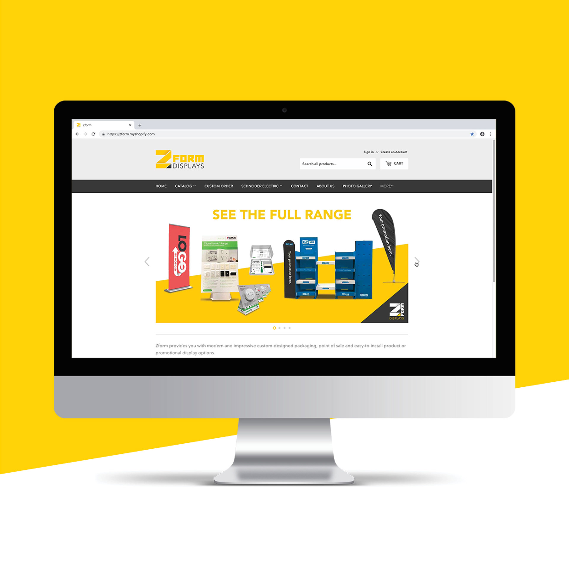 Online shop design for custom-design packaging, point of sale and easy-to-install product or promotional display options.